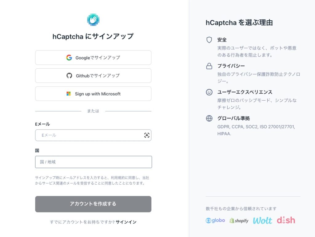 hCaptchaにサインアップ