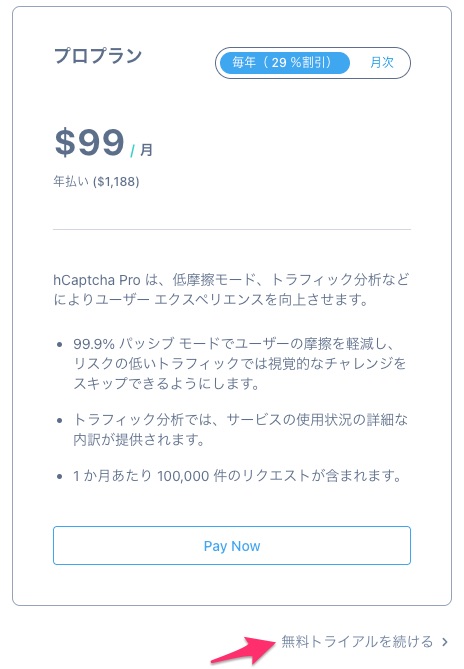 ちなみにPRO版は、低摩擦モードと書いてありますが、一度SPAM判定されなければ次回以降、何度も「人間ですか?」と聞いてこないなどUXが良くなるようです。