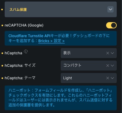BricksのFormに大量のSPAMが届いたので、改めてSPAM対策を施しましたので、その設定方法をキャプチャ付きで解説いたします。