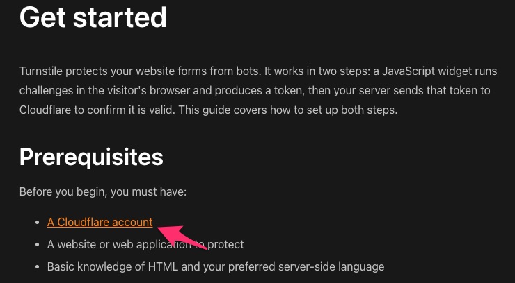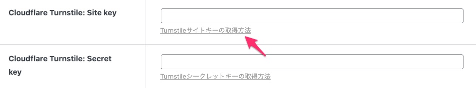 Cloudflare Turnstileのサイトキーの取得方法のリンクをクリックして進みます。