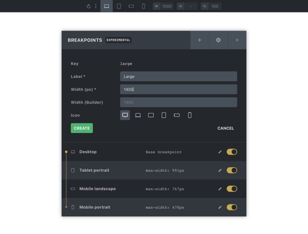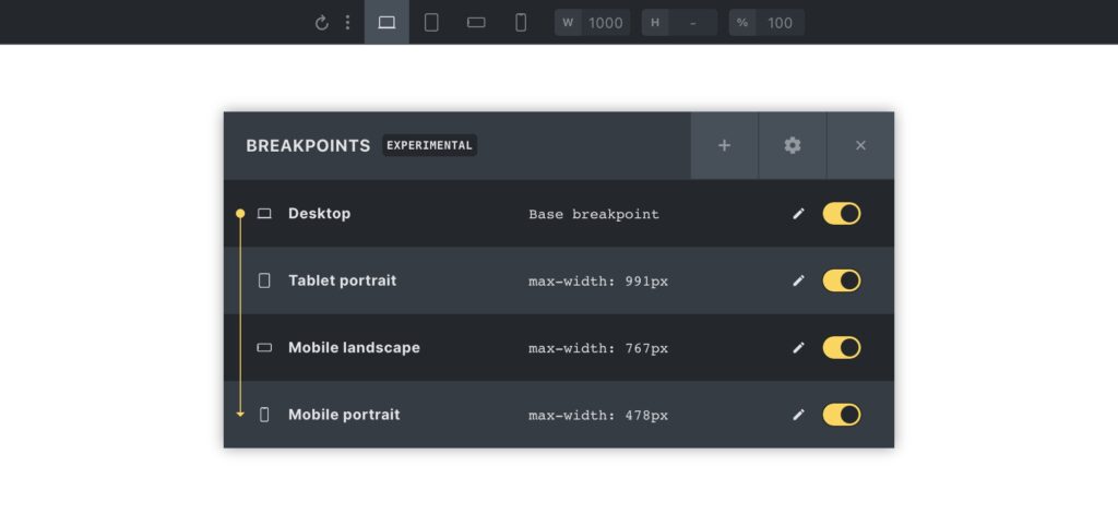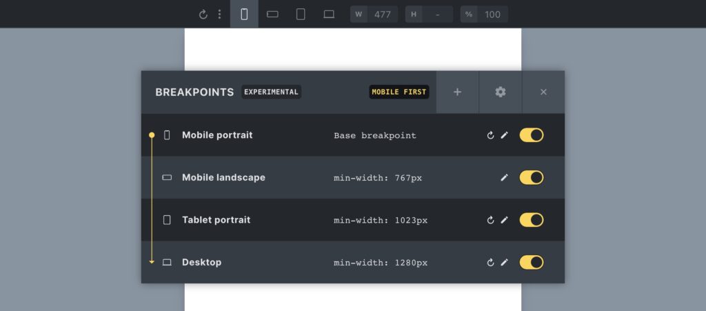もし自分のサイトに合ったサイズがほしい場合は、カスタムブレークポイントを追加できます。