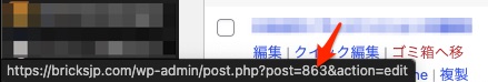 投稿一覧画面でタイトルにカーソルを合わせると、画面左下に URL が表示されます。